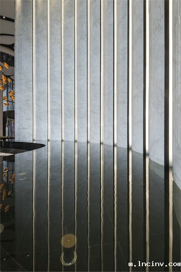 米白与深色石材作配搭,一方面配合自然亦带来视觉上的强烈反差对比,同时整个空间着墨于「弧线」上,配合光线令空间布局主次分明。