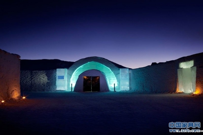 瑞典冰酒店的入口。这座晶莹剔透的酒店位于尤卡斯耶尔维,最初是22年前的一个设计项目,现在已成为世界上最著名的酒店之一。